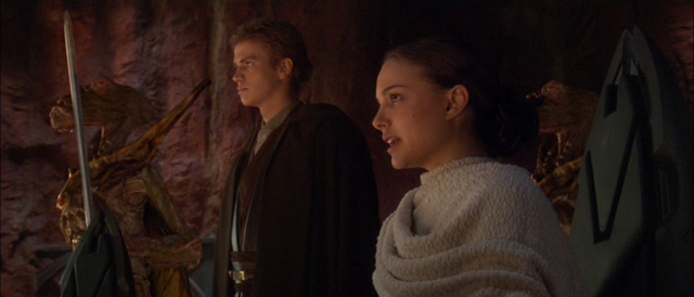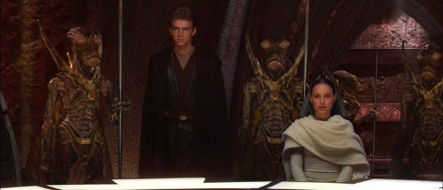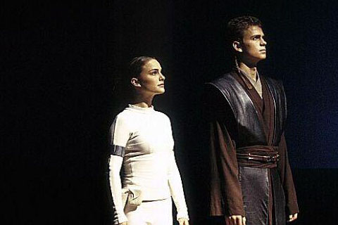 ANAKIN and PADMÉ are standing in the center of what looks like