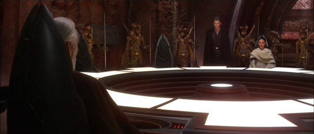 - INT. GEONOSIS, HIGH AUDIENCE CHAMBER - DAY