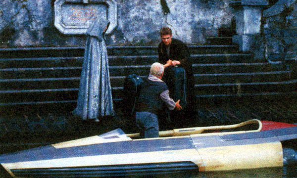 PADDY ACCU drives the water speeder away from the platform as Anakin's
