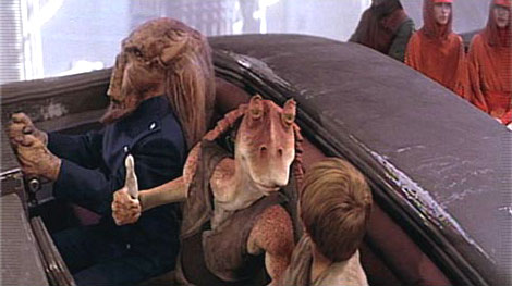 JAR JAR and ANAKIN start to follow, then stop, noticing that