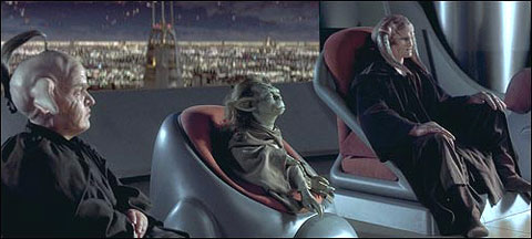 sit in the circular assembly area. CHANCELLOR VALORUM sits in an
