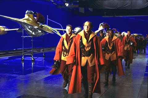 ANAKIN and ARTOO follow the squad of yellow Naboo starfighters