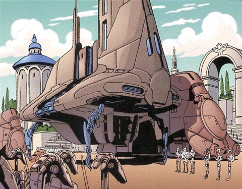 transport carrying NUTE and RUNE lands in Theed Plaza. They