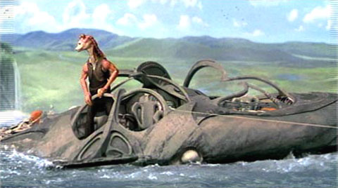JAR JAR looks back to where they're drifting. He sees they are headed
