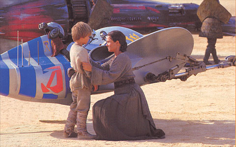 PADMÉ comes up and gives ANAKIN a little kiss on the cheek. SEBULBA